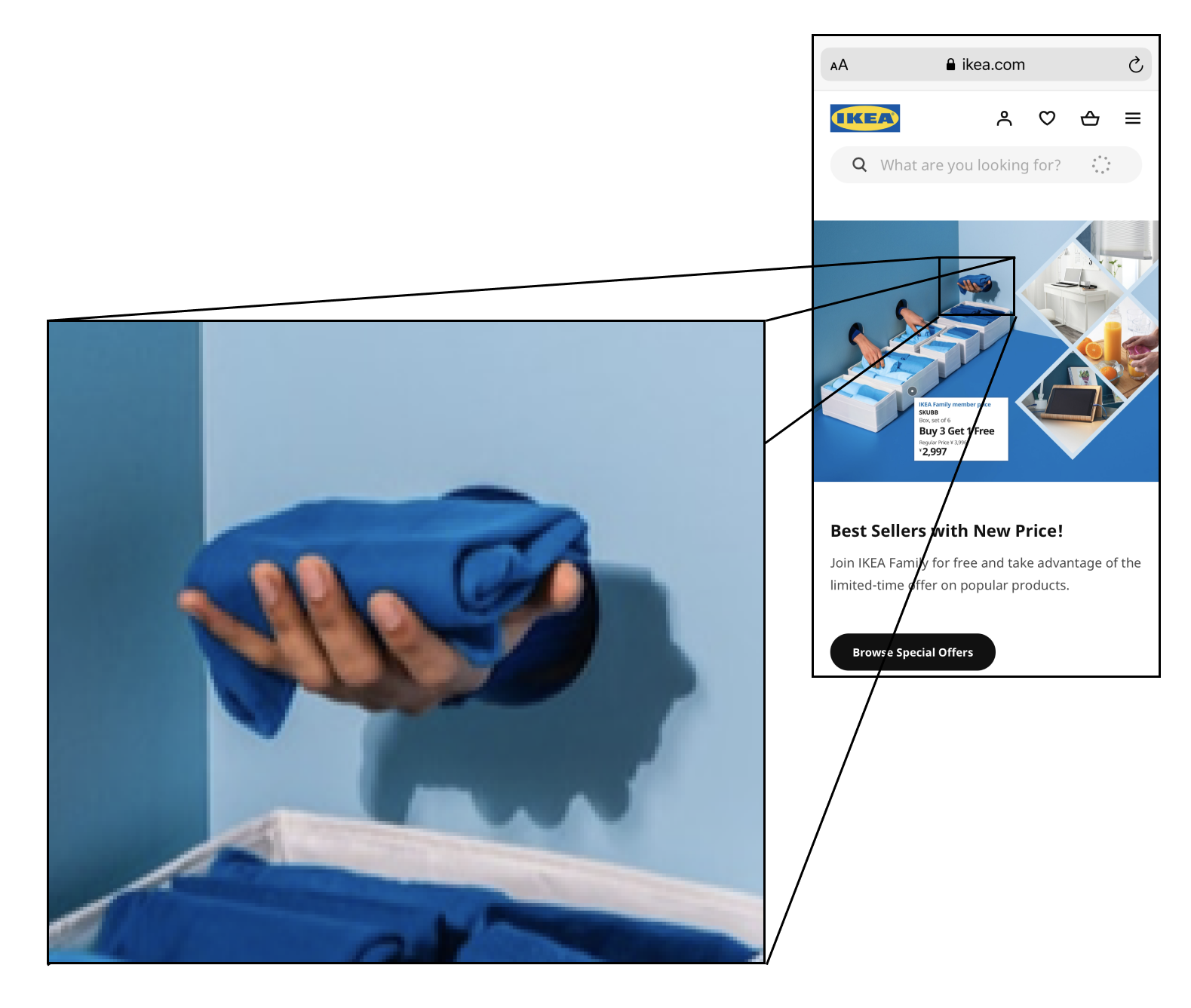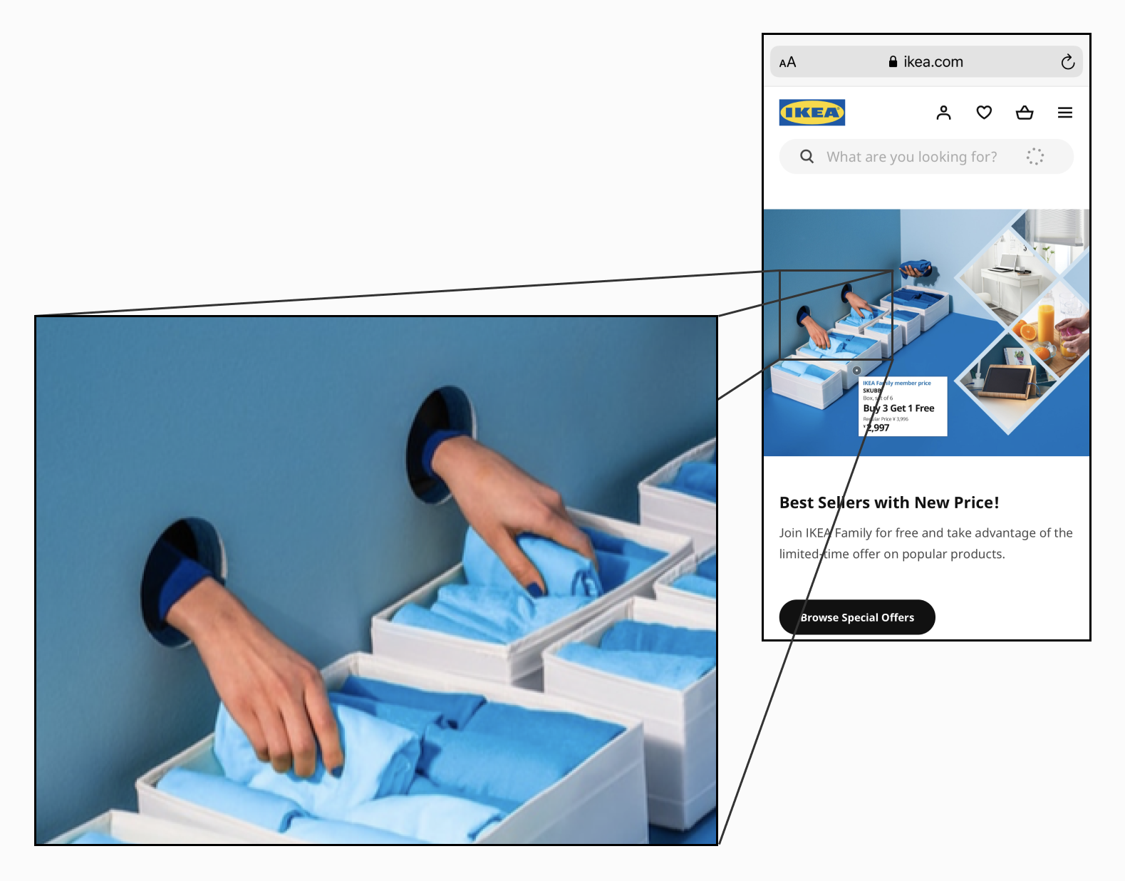 My initial, gut-level reaction to this image is that it looks like a scientist handling radioactive material through a protective panel (Fig. 2) - or maybe a surgeon operating on E.T. This is a weird headspace to be in, and it definitely doesn’t put me in the mood to buy towels, towel holders, or join IKEA’s family program.